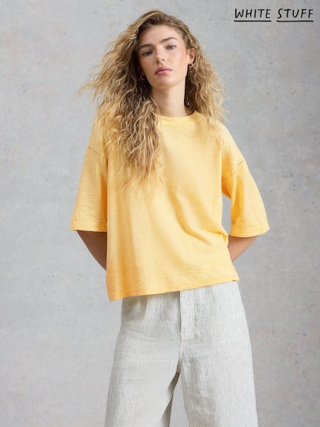 White Stuff Yellow Nelly Notch Neck 100% Cotton T-Shirt