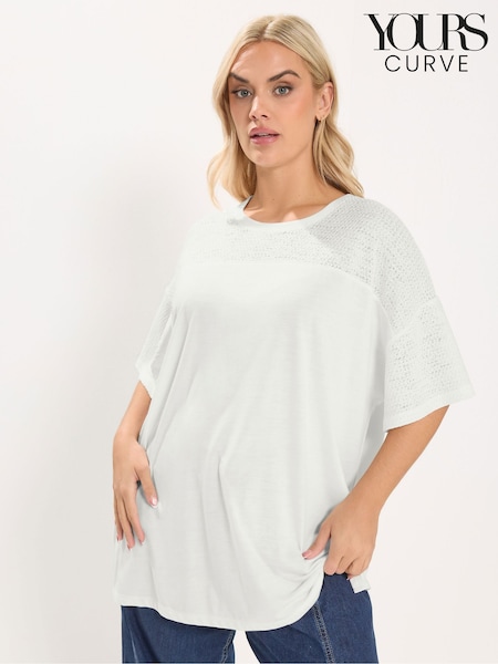 Yours Curve White Boxy Mixed Fabric T-Shirt