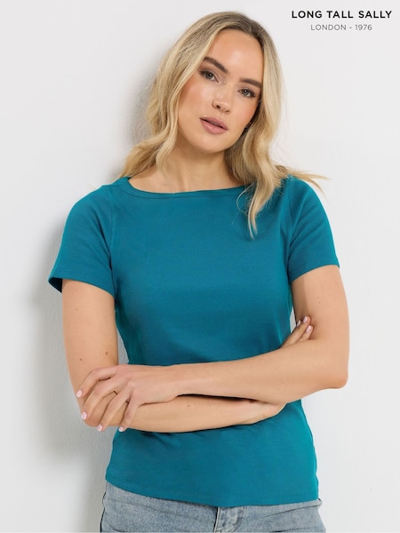 Long Tall Sally Blue Ribbed Boat Neck T-Shirt