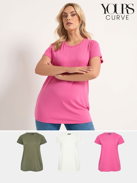 Yours Curve Green Core Short Sleeve T-Shirts 3 Pack