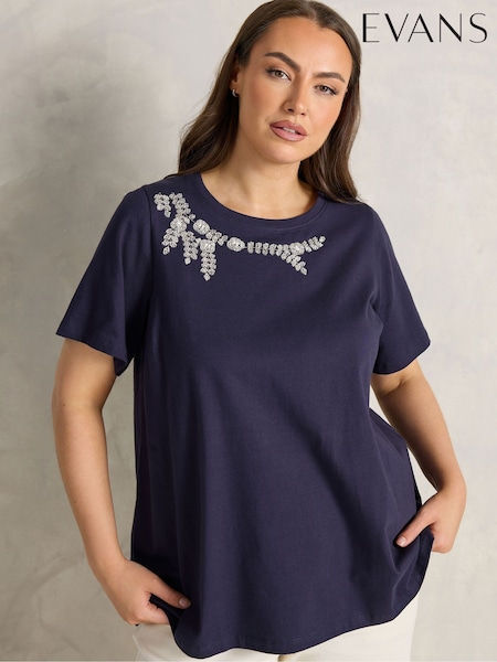 Black Embellished Neck Chain Short Sleeve Crew Neck T-Shirt
