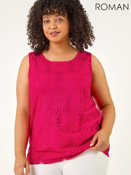 Roman Pink Curve Sunflower Lace Texture Vest