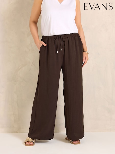 Evans Brown Pull On Crepe Trousers