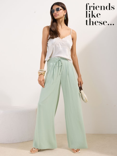 Friends Like These Pistachio Green Super Wide Leg Trousers with Linen