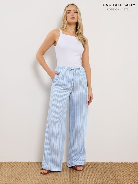 Long Tall Sally Blue Wide Leg Trousers With Linen