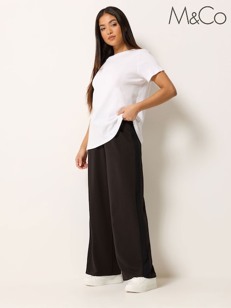 M&Co Black Petite Side Stripe Wide Leg Trousers