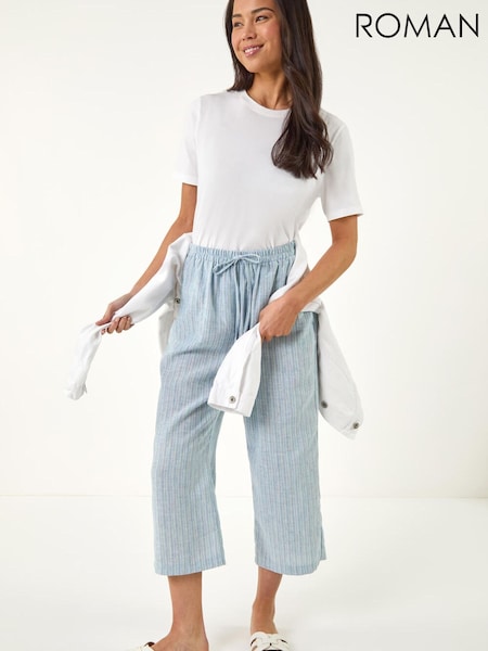 Roman Blue Petite Stripe Cropped Wide Leg Trousers