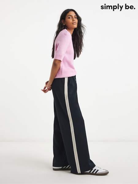 Simply Be Blue Tie Waist Side Stripe Wide Leg Trousers