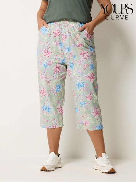 Yours Curve Green Cool Cotton Crop Trousers