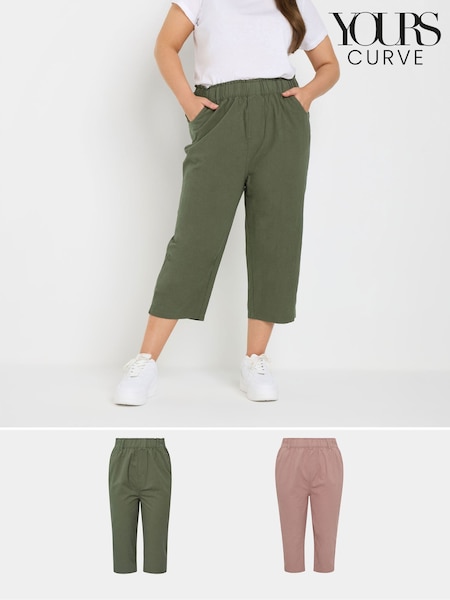 Yours Curve Green Cool Cotton Cropped Trousers 2 Pack