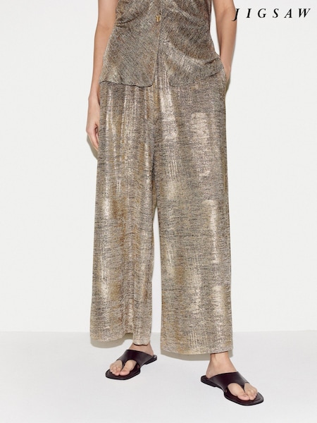 Jigsaw Gold Shimmer Jersey Palazzo Trousers