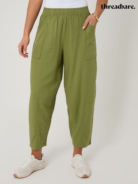 Threadbare Green Linen Blend Pocket Detail Barrel Leg Trousers