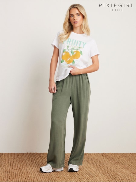 PixieGirl Petite Green Acid Wash Wide Leg Trousers