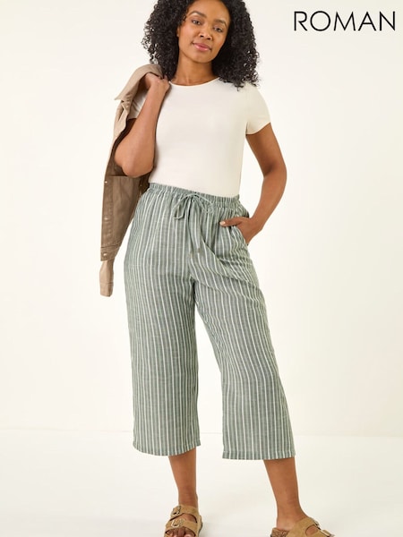Roman Green Petite Stripe Cropped Wide Leg Trousers
