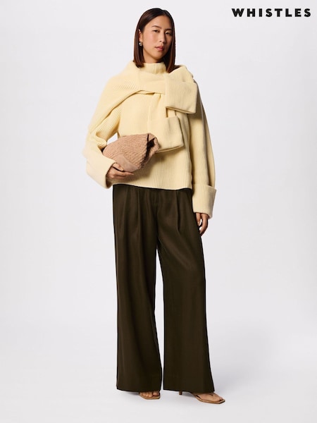 Whistles Green Wide Leg Hopsack Trousers
