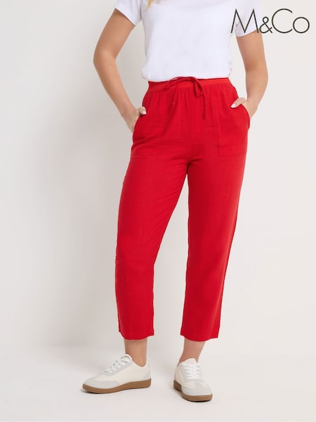 M&Co Red Petite Linen Blend Cropped Trousers