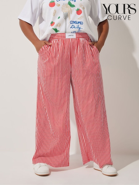 Yours Curve Red Limited Stripe Boxer Waist Trousers