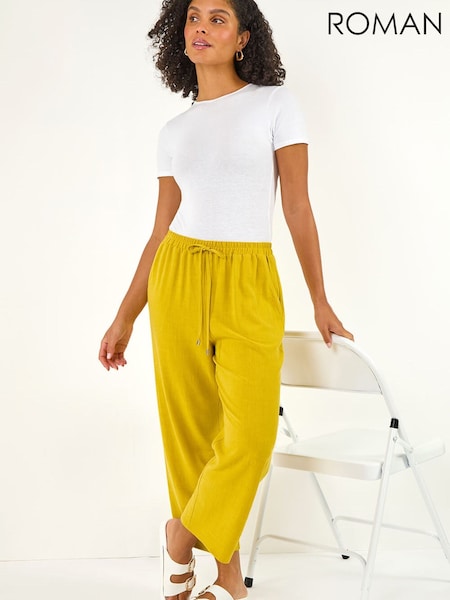 Roman Yellow Cropped Linen Trousers