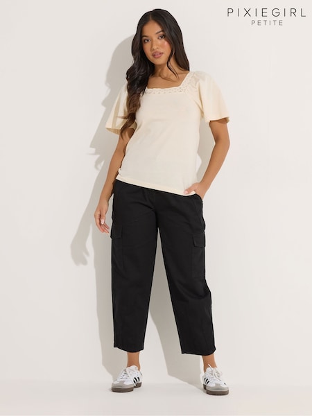 PixieGirl Petite Black Barrel Leg Cargo Trousers