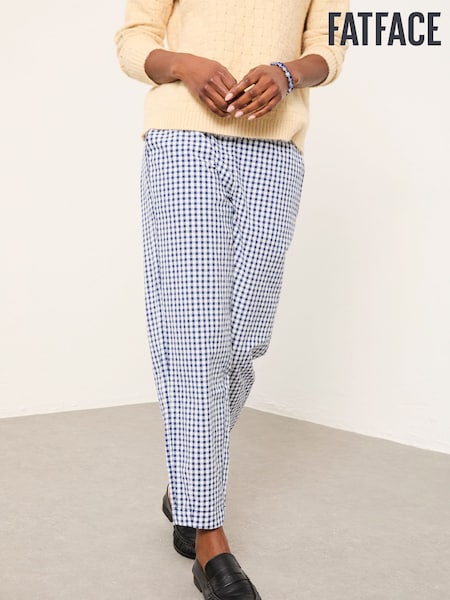 FatFace Blue Gingham Tapered Trouser
