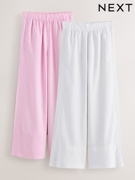Pink/White Linen Blend Wide Leg Trousers 2 Pack