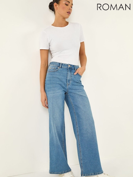 Roman Denim Blue Petite Wide Leg Denim Trousers