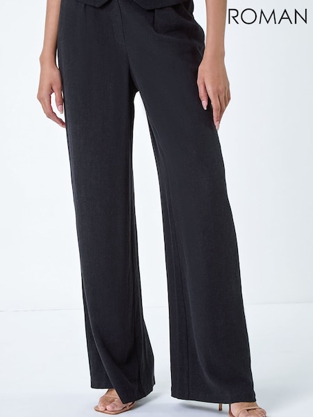 Roman Black Petite Wide Leg Ponte Stretch Trousers
