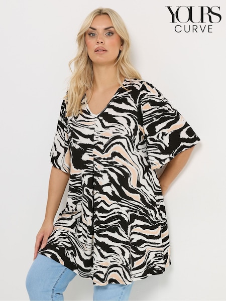Yours Curve Black / Cream Pleated Front Top