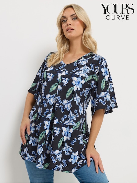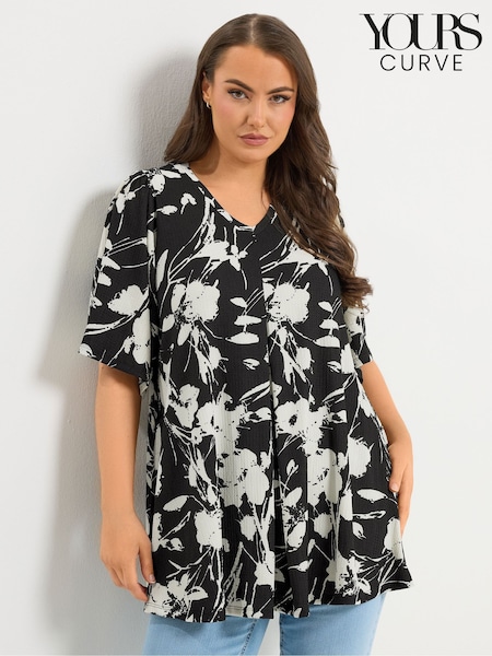 Yours Curve Black Floral Pleated Front Top