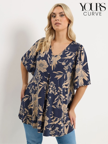 Yours Curve Navy Pleated Front Top