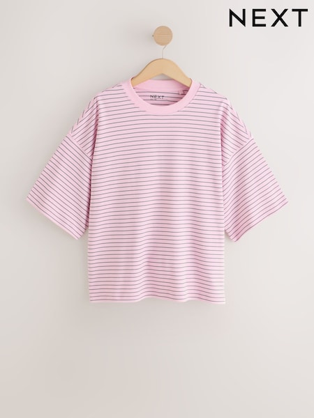Pink Stripe Oversized Relaxed Fit Boxy Heavyweight Crew Neck T-Shirt