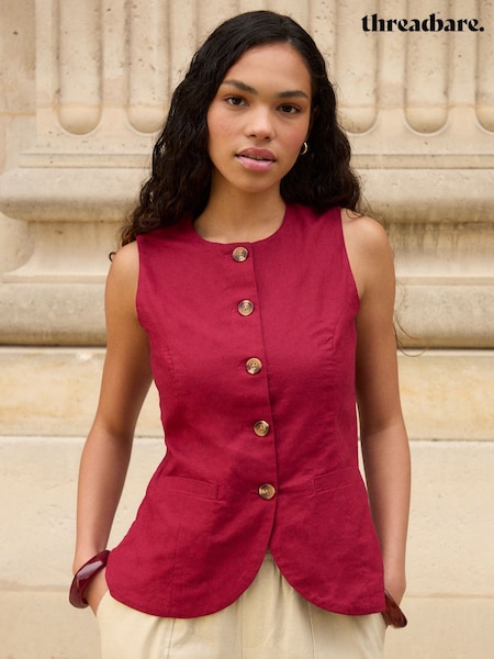 Threadbare Red Linen Blend Longline Waistcoat
