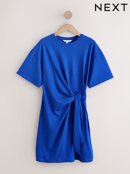 Cobalt Blue Tie Waist Mini T-Shirt Dress