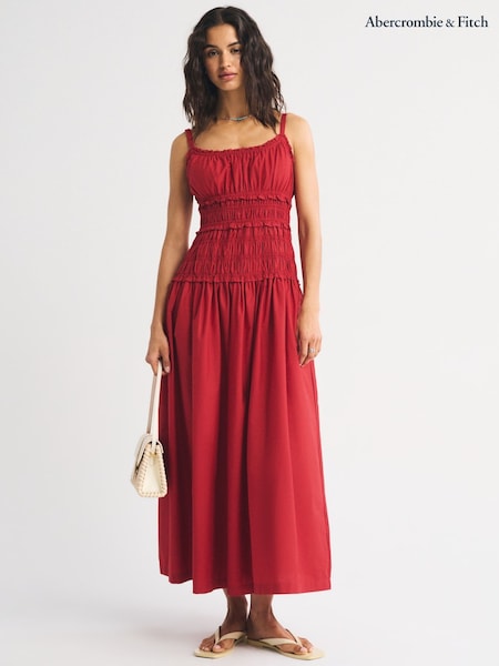 Abercrombie & Fitch Red Strappy Smocked Drop Waist Maxi Dress