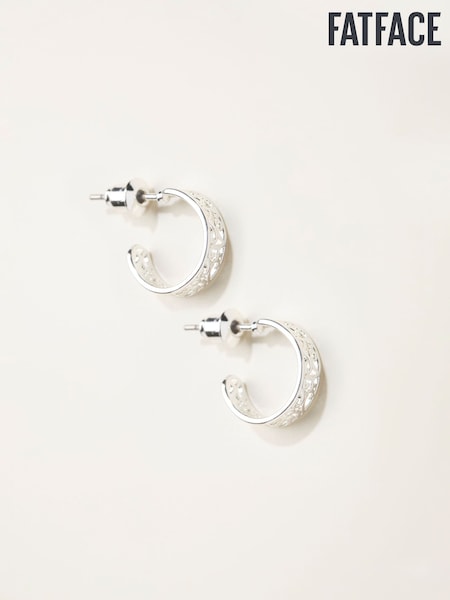 FatFace Silver Tone Daiy Enamel Hoop Earrings