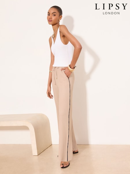 Lipsy Neutral Tipped Detail Crinkle Trousers