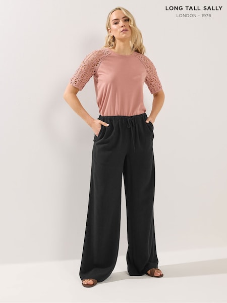Long Tall Sally Black Wide Leg Trousers With Linen