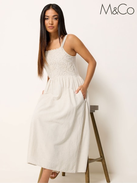 M&Co Natural Petite Linen Blend Cornelli Dress