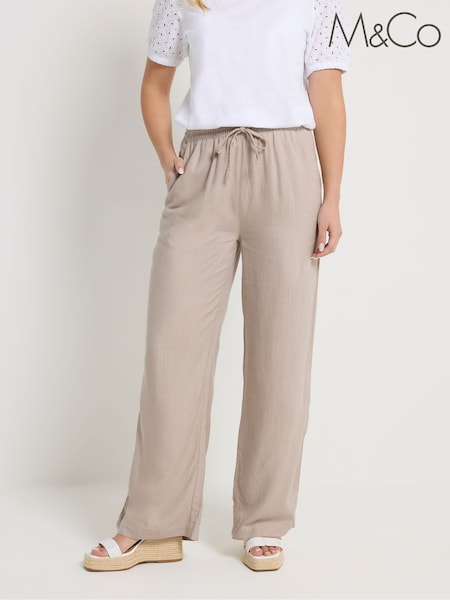 M&Co Natural Wide Leg Linen Blend Trousers