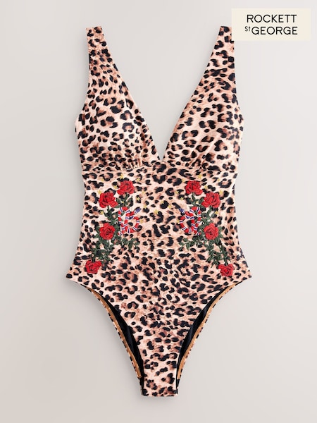 Rockett St George Animal Print Plunge Swimsuit