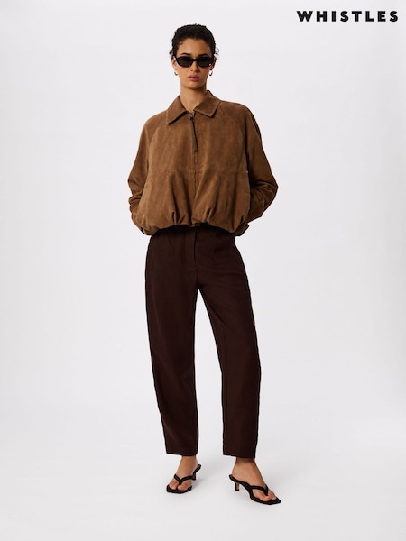 Whistles Brown Linen Barrel Leg Trousers