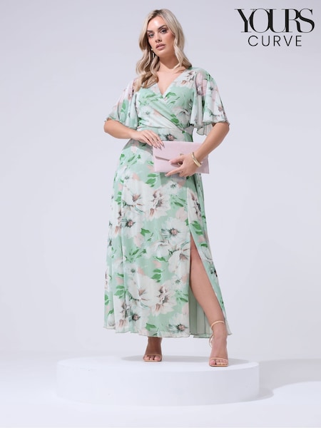 Jolie Moi Green Asymmetric Neckline Midaxi Dress