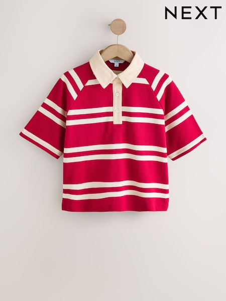 Red Stripe Short Sleeve Collared Rugby Polo Top