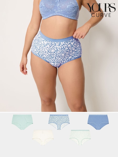 Yours Curve Blue Silhouette Leaf Print Full Briefs 5 Pack