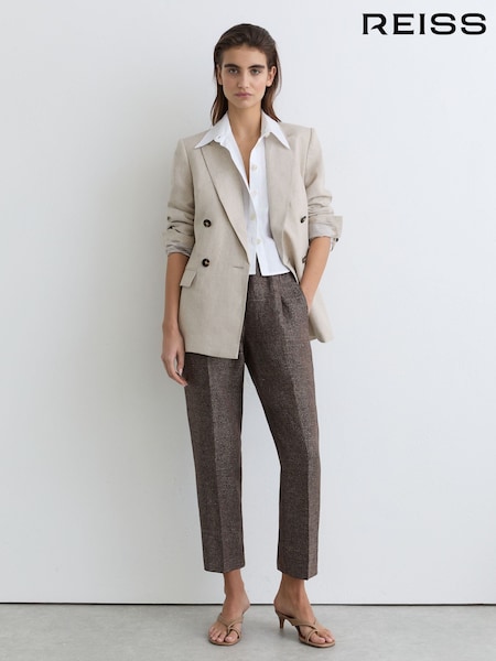 Reiss Brown Lourdes Petite Woven Linen Cropped Tapered Trousers
