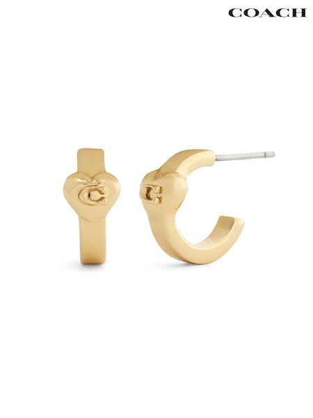 COACH Gold Tone Signature C Heart Huggie Earrings