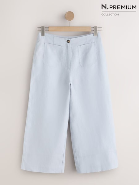 Light Blue N. Premium 100% Linen Crop Wide Leg Trousers