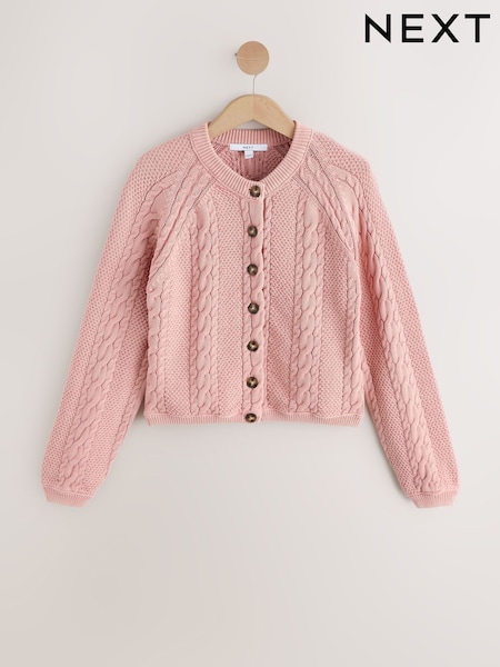 Blush Pink Cable Knit Long Sleeve Cotton Cardigan