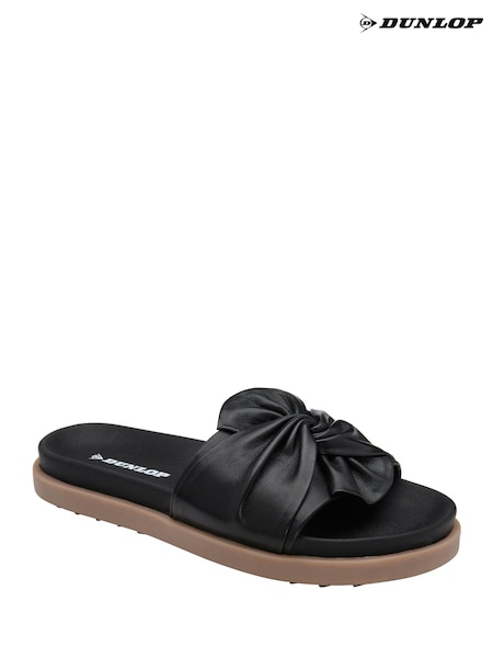 Dunlop Black Double Strap Leather Footbed Mule Sandals