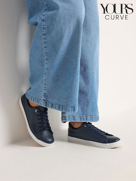 Yours Curve Blue Extra Wide Fit Faux Leather Lace Up Trainers